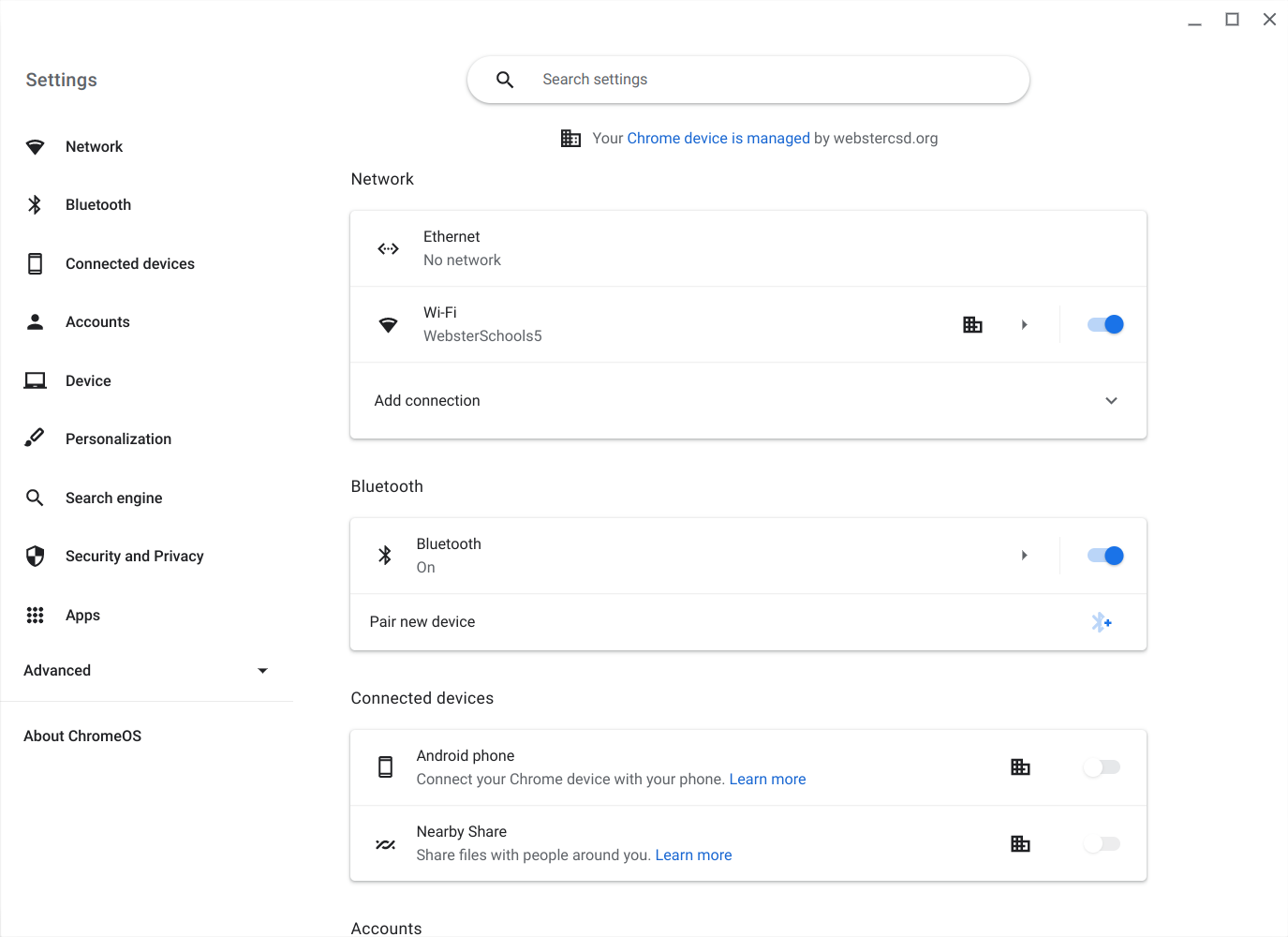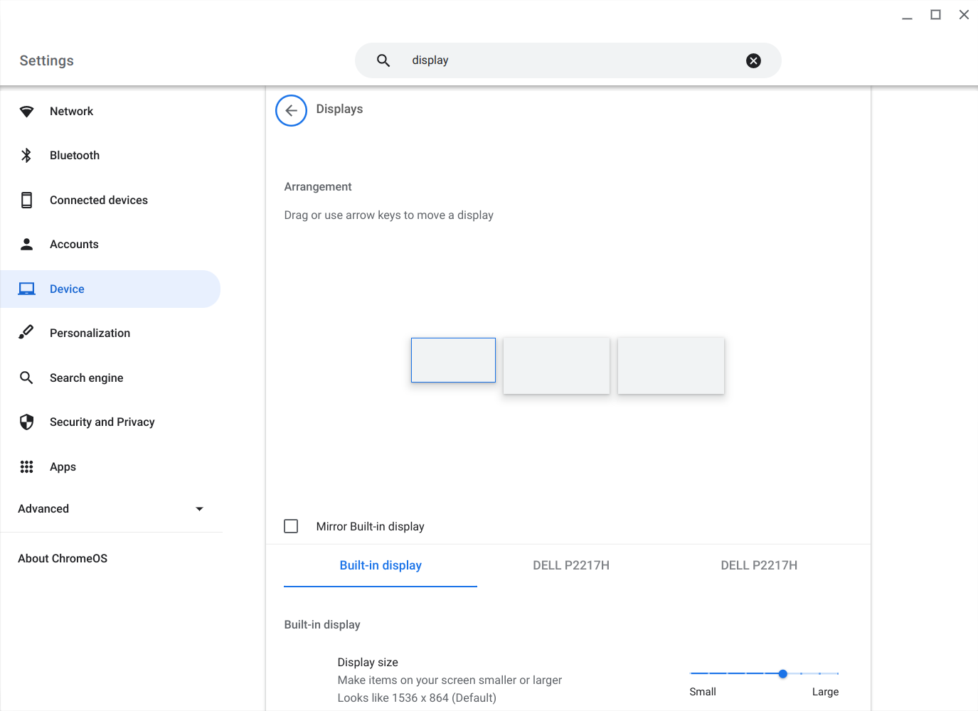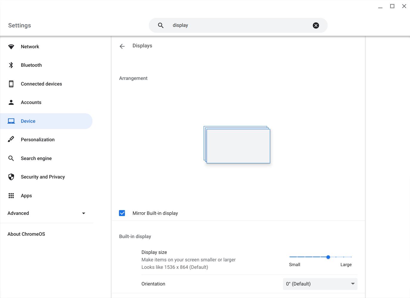 - Once you find that section in settings click on it and it will take you to a window where you will see all the screens the chromebook is connected to.