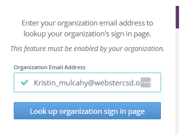 Once you click that link you will enter your Webster email address then click on “Look up organization sign in page”