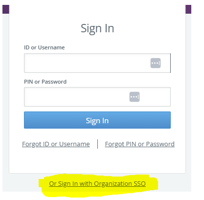 Click on the link below the Sign In Box - Or Sign In with Organization SSO