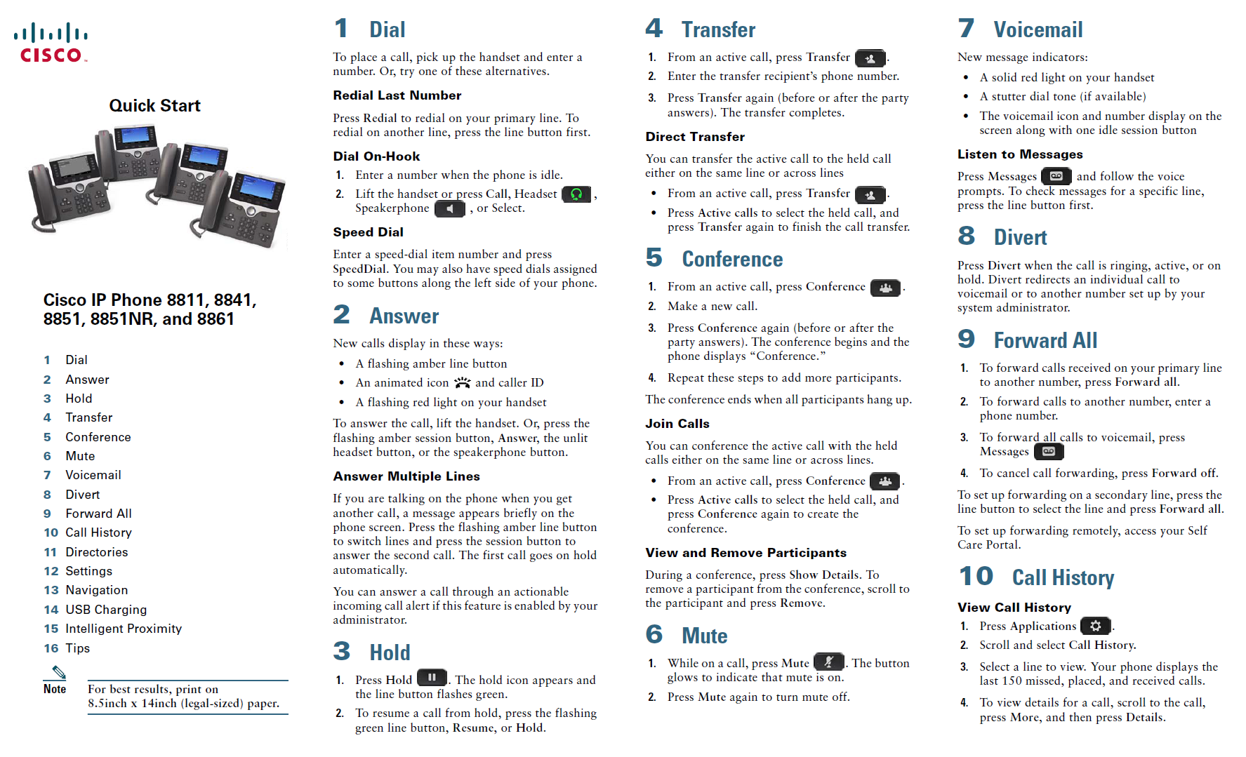 Home > Device Help > Phone > Cisco 8851 Model Phone Quick Guide